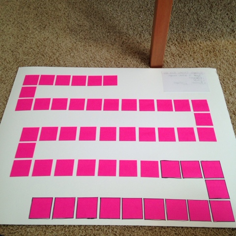 Pick a side to be your "Start" and leave room for a big "Start" square/picture. Lay out your post-it notes with a bit of room between.